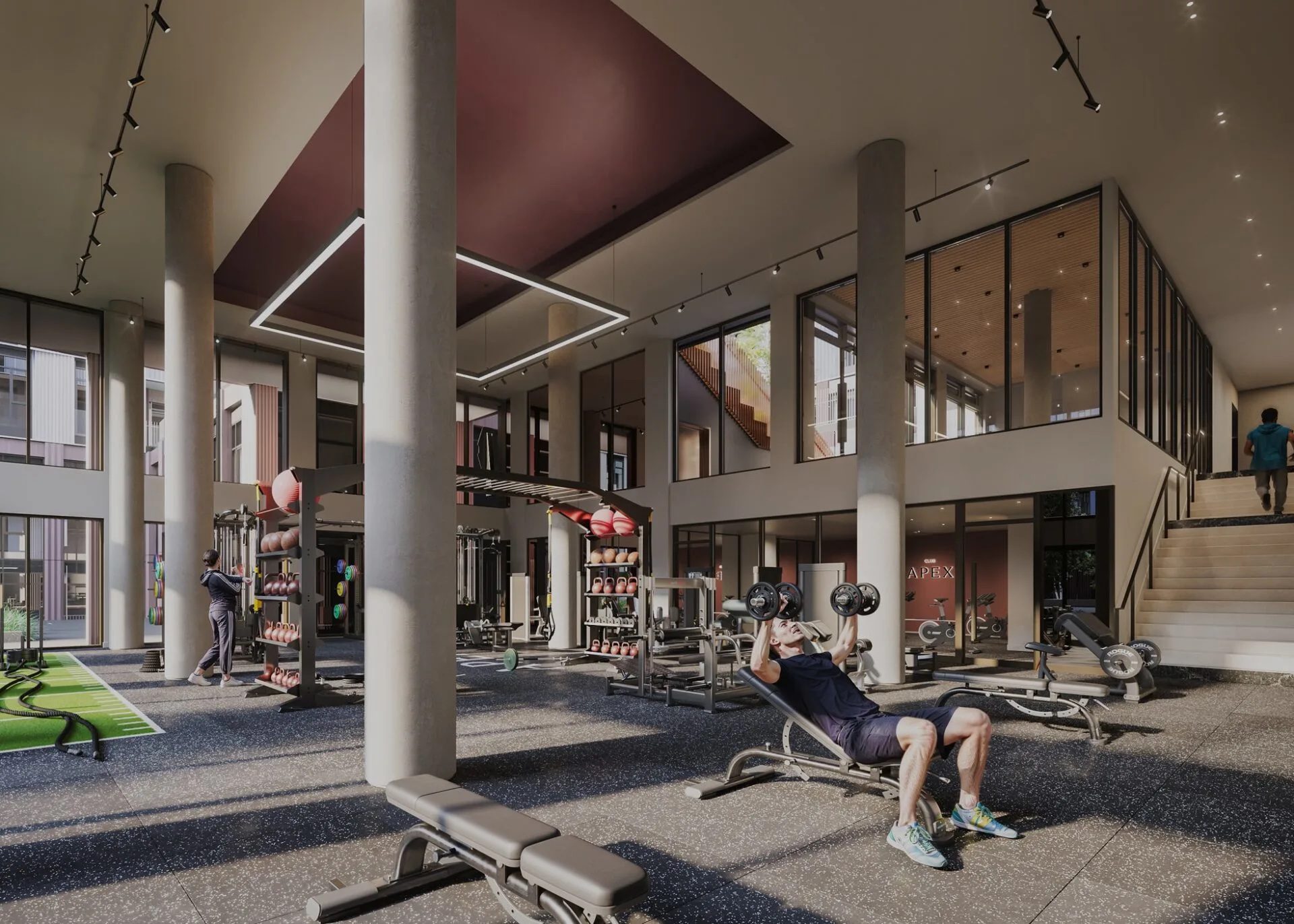 • Club Apex — Full fitness centre, strength training room, stretch and spin studio, personal training, massage services, and virtual classes