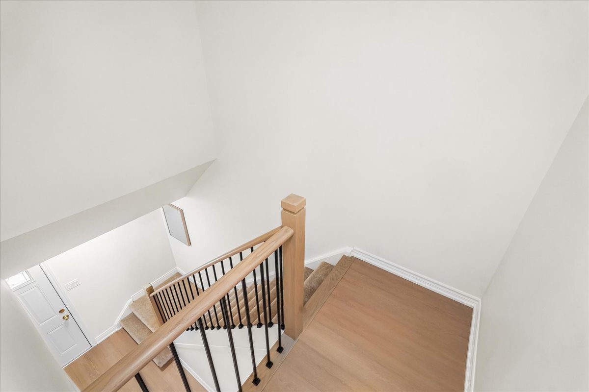 Upstairs, three spacious bedrooms share a renovated 4-piece main bathroom. Meanwhile, the primary bedroom includes a walk-in closet. A new oak staircase with metal spindle railing and new broadloom on the upper and lower stairs complete the second level.