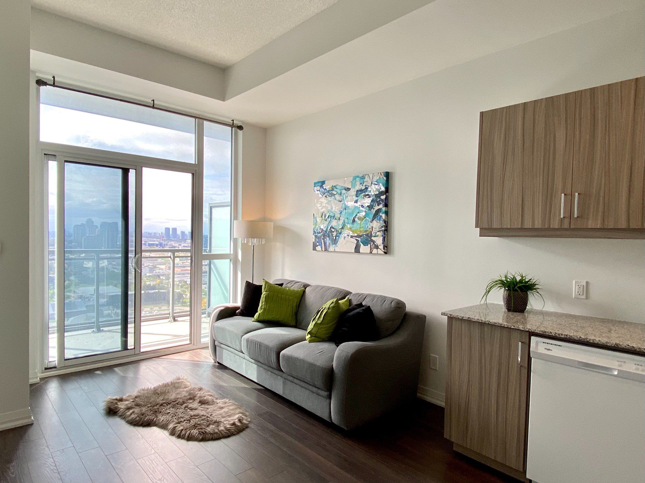 Enjoy clean modern finishes, a flexible den for a home office or guest space, and floor-to-ceiling windows with sweeping skyline views including the iconic CN Tower. This 30 Meadowglen condo lease is perfect for professionals, small families, or anyone seeking a stress-free, city-connected lifestyle.